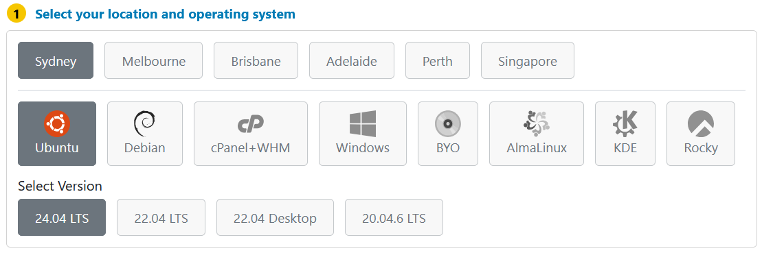 From here, you can choose from a range of BinaryLane-hosted images that you can use to quickly get started: