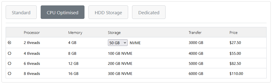 Designed for processor-intensive workloads, these servers provide dedicated hyper-threads with clock speeds boosting to 4+ GHz - ideal for high-performance computing, game servers, and complex calculations: